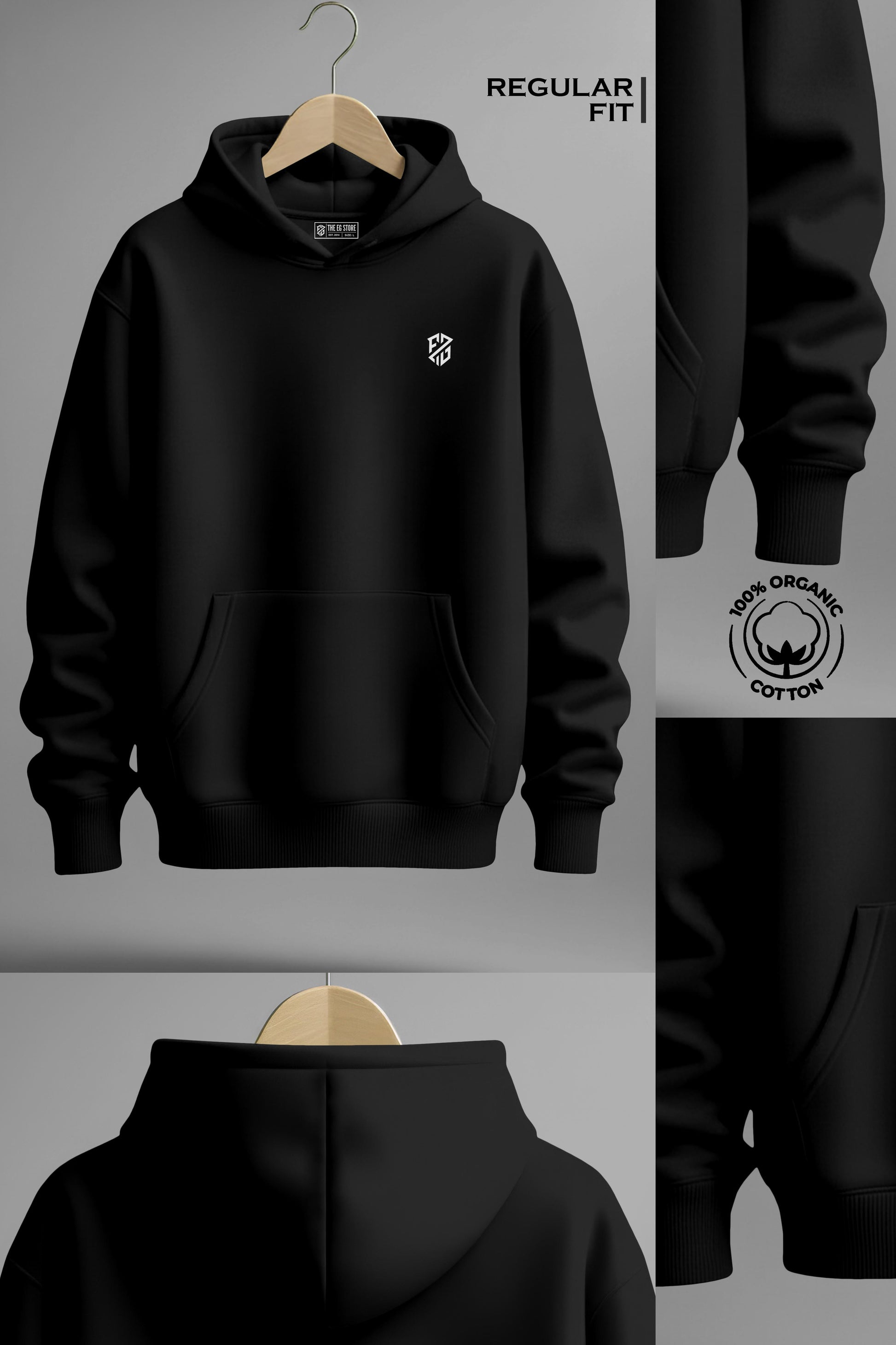 Men’s Pitch Black Heavyweight Hoodie – 420 GSM Full Sleeve Oversized Fit